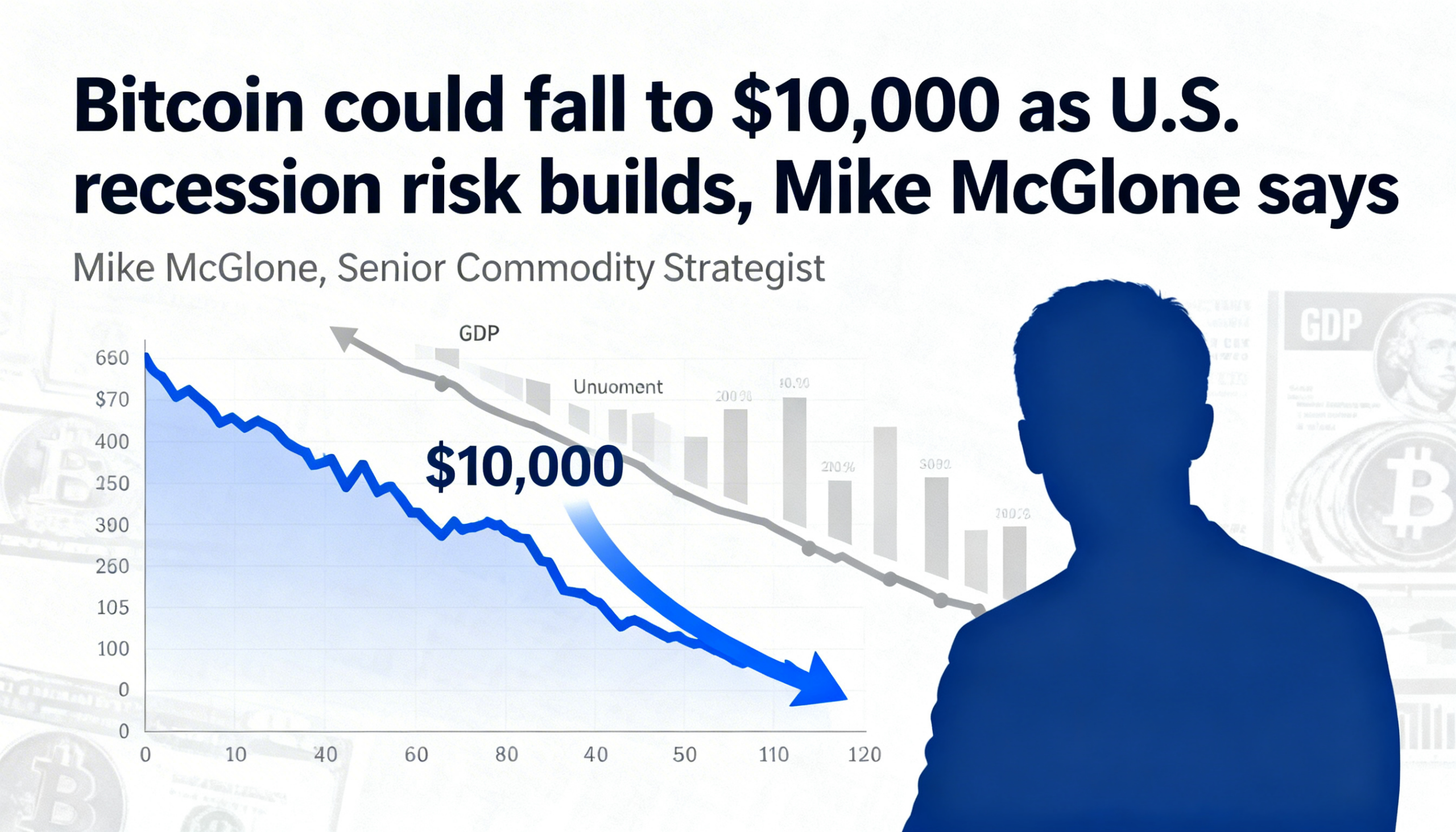 Bitcoin may slide to $10,000 as U.S. recession odds rise, says Mike McGlone.