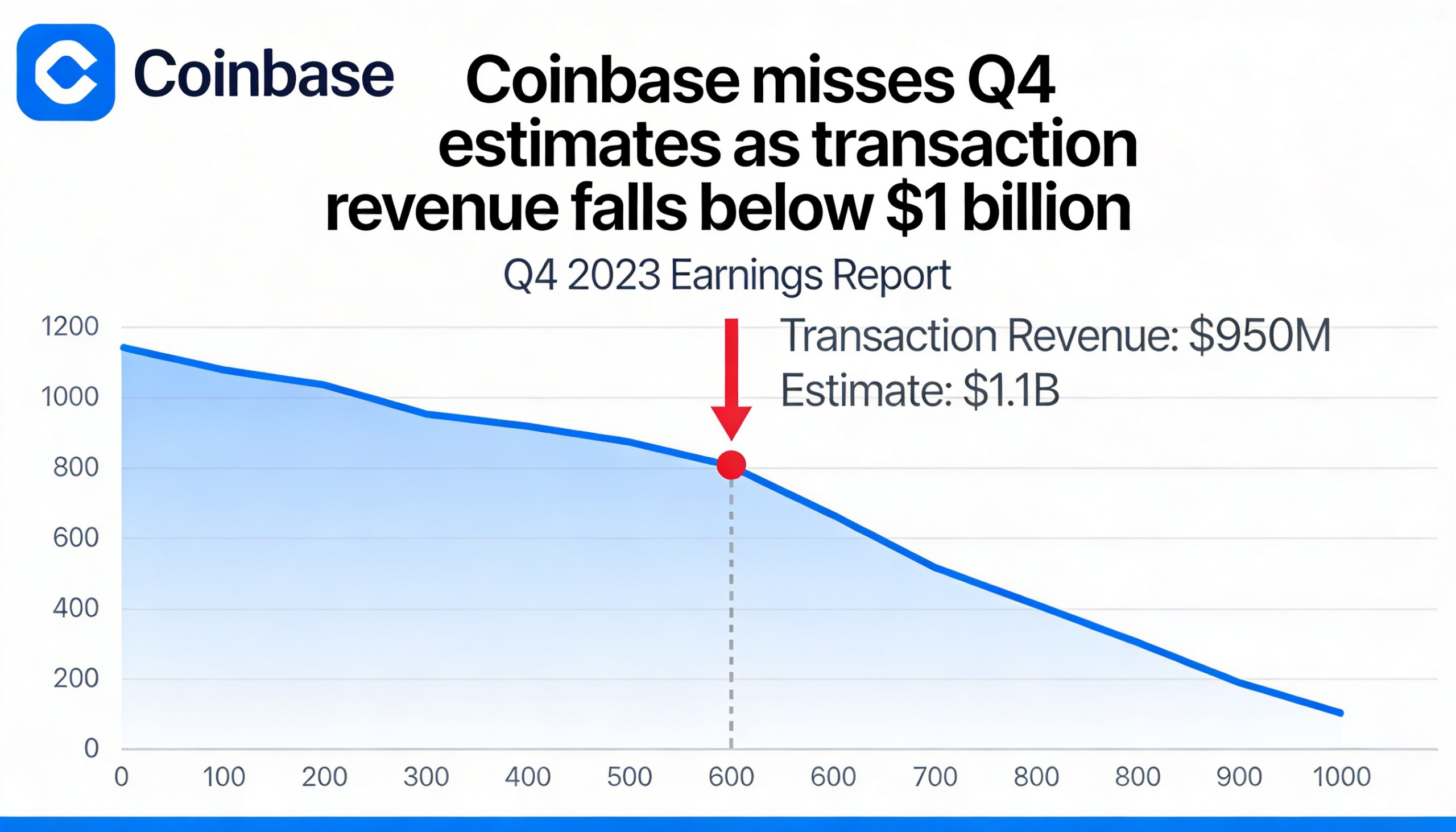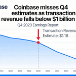 Coinbase posts a Q4 earnings miss after transaction revenue dips beneath the $1 billion mark.