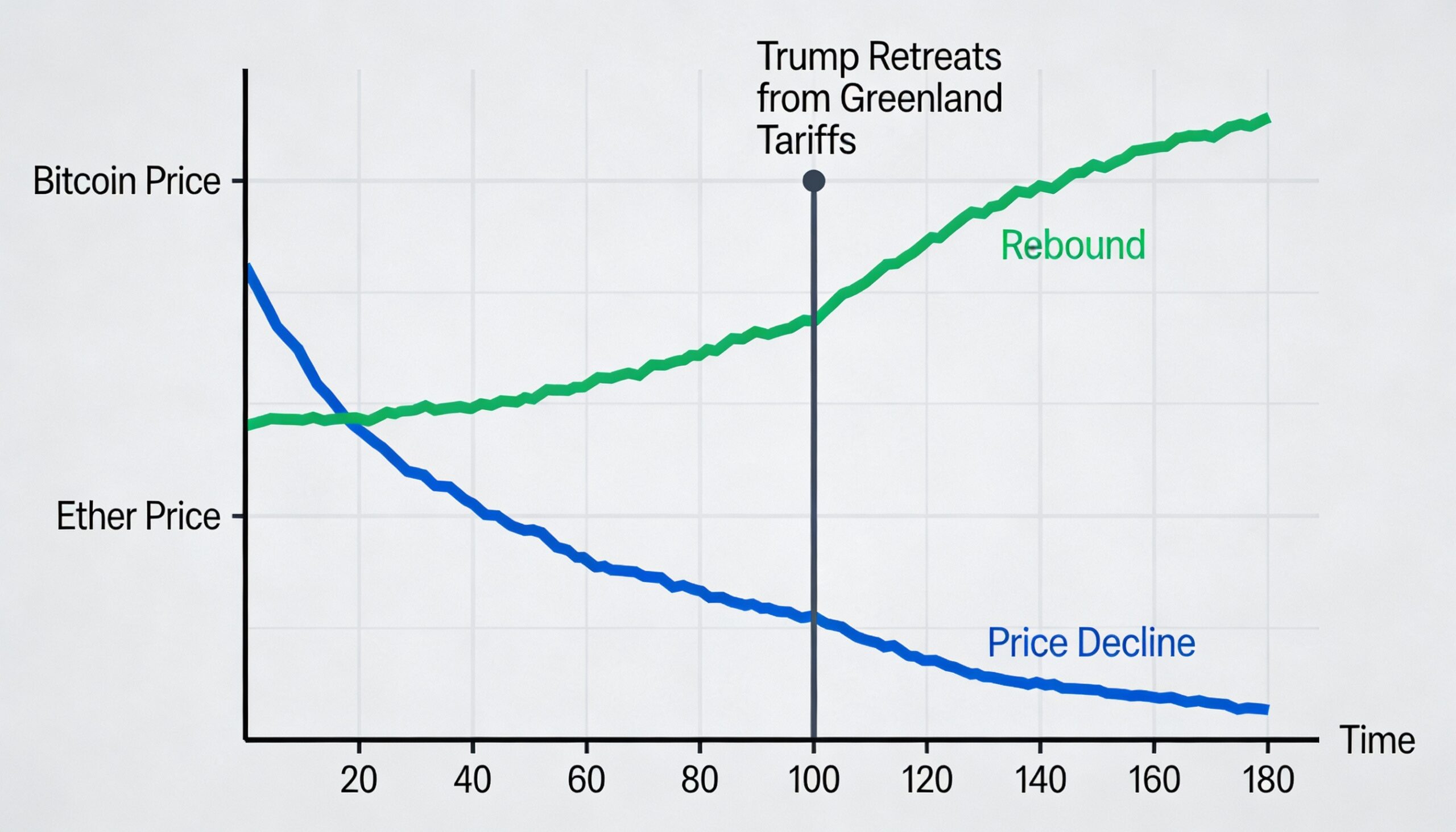 Bitcoin fell to around $87,300 late Wednesday as U.S. markets reacted to Trump’s rhetoric and bond market volatility lingered. Sentiment turned quickly after Trump said he would refrain from imposing tariffs on European countries opposing U.S. control of Greenland, instead referencing what he described as a “framework of a future deal.”