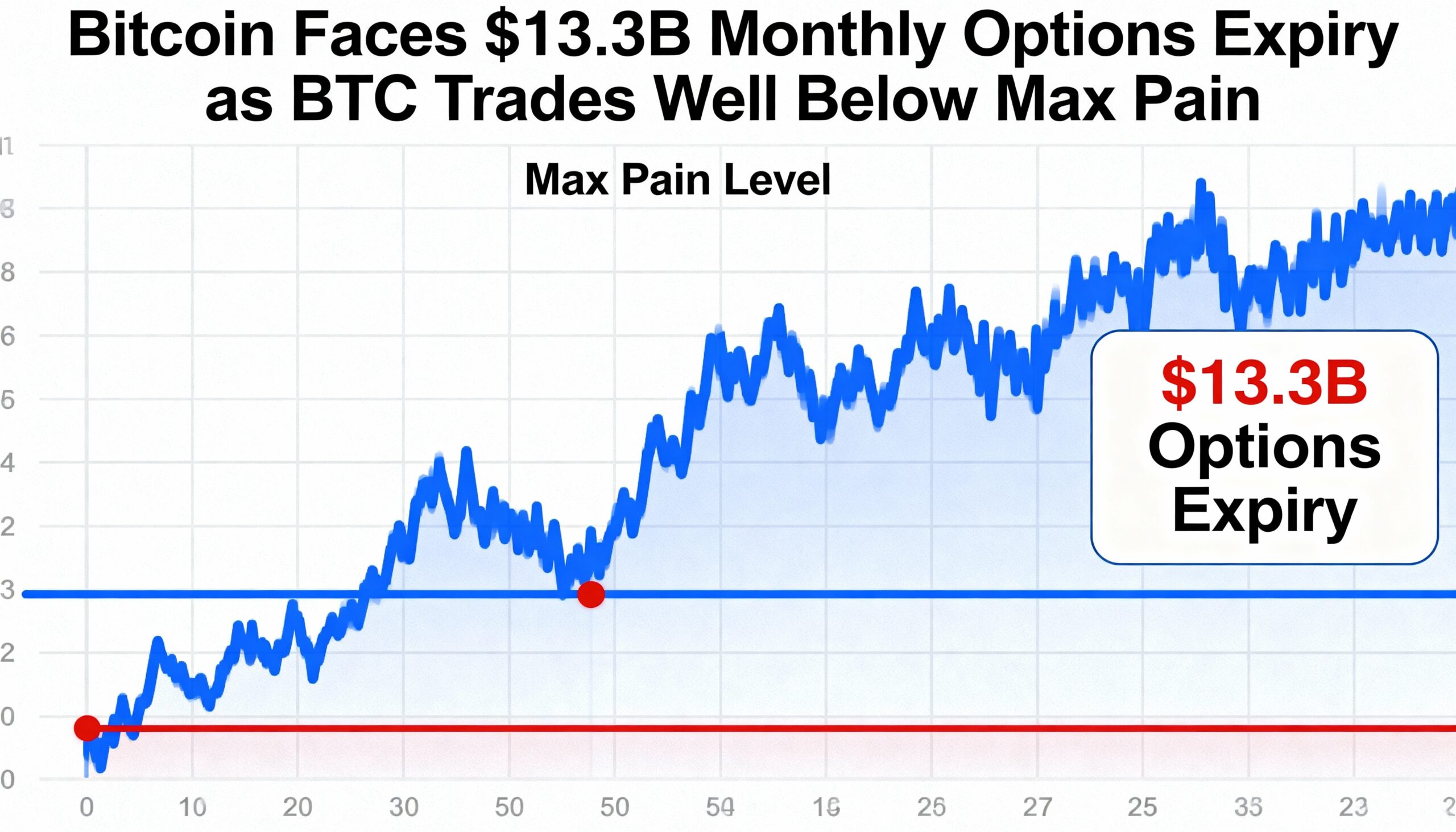Data from Deribit shows 153,778 BTC in options set to expire, made up of 92,692 BTC in call open interest and 61,086 BTC in put exposure. Altogether, the contracts carry a notional value of roughly $13.3 billion, with a put-call ratio of 0.66—indicating calls still dominate, even as hedging demand grows.