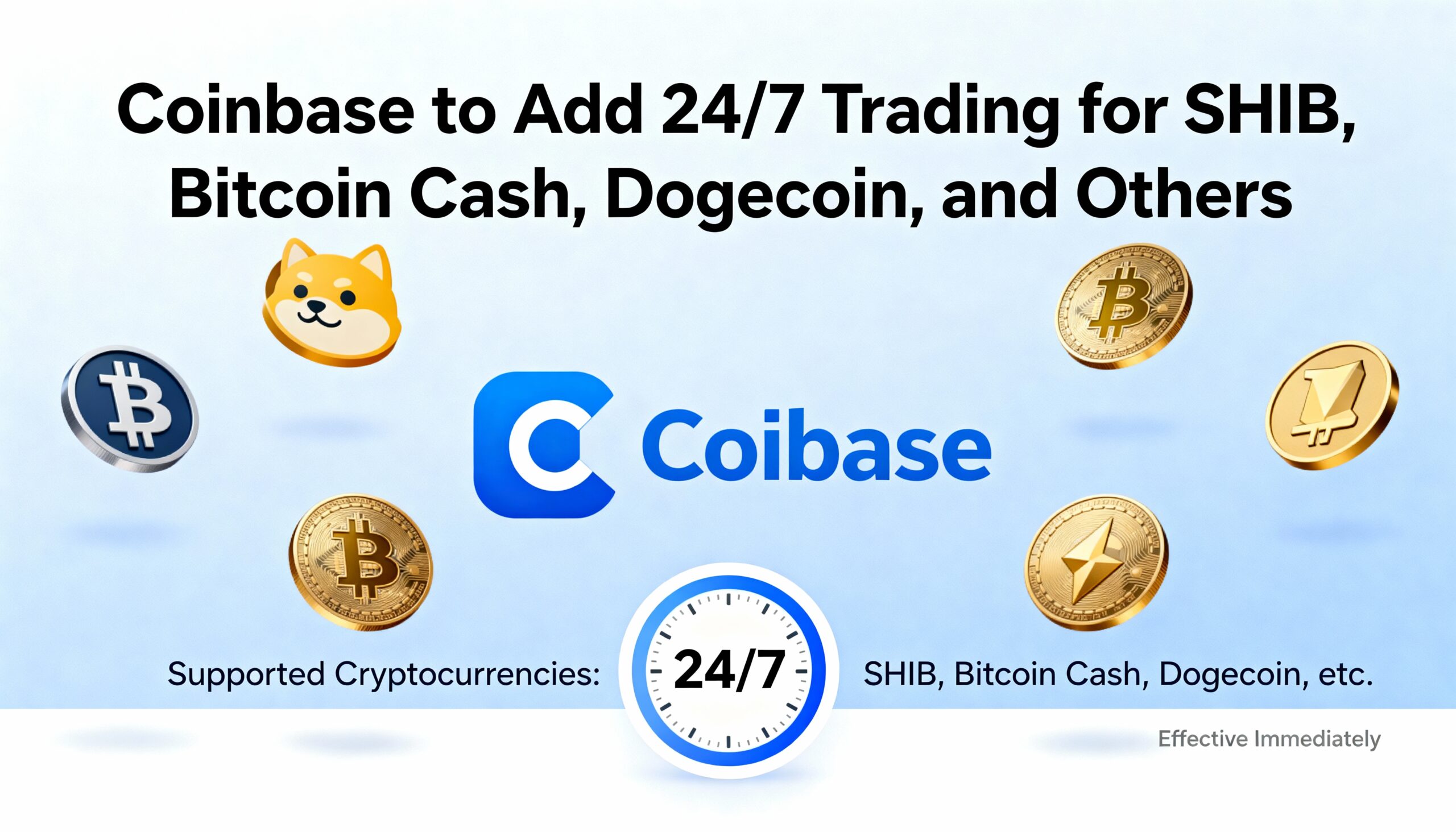 Coinbase Announces Around-the-Clock Trading for SHIB, Bitcoin Cash, Dogecoin, and Others